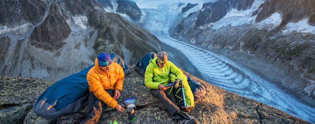We’ve already mentioned specially-designed duvets which can be carried in place of sleeping bags when sleeping in a tent, giving significant savings. But alternatively, carry two sleeping bags between three people and zip these together to make a big, cosy alpine bag!