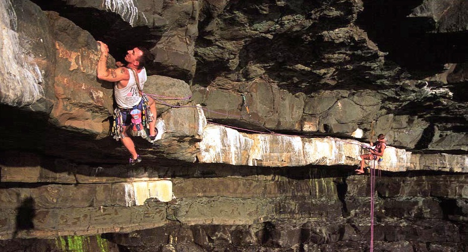 The limestone cliffs to the north-east of Snowdonia offer a mixture of tough trad and well bolted sport routes, in another often-dry microclimate. The main attraction is the Orme, a small peninsula on the edge of the popular tourist town of Llandudno. Here trad test-pieces from the 1980’s sit alongside quality sport routes from the mid 6’s all the way up to Neil Carson’s Big Bag (F9a) on the steep tidal crag of Lower Pen Trwyn. Of interest to the hardcore boulderer will be Parisella’s cave, an extremely steep, extremely roadside venue with some of the UK’s hardest problems blasting out from its depths. Away from the Orme are a number of quarries and caves with a great selection of sport routes, including venues such as Castle Inn Quarry which have good, well protected sport climbs in the lower grades.
