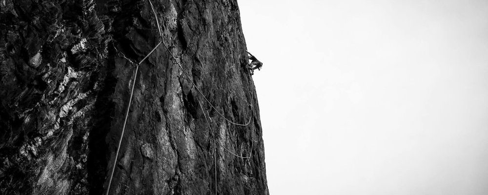Belaying at the cliff edge, 59 metres of rope beneath me, I watched as Tim climbed. The salty sea was far below; it frothed and foamed, eager to taste the Red Walls sugary topping. Water punched and licked at the rock’s surface, and fluffs of lichen rose on the updraft. I could hardly believe I’d managed the pitch, psyched to have combined two routes into one giant monster. I gazed out to sea and grinned.