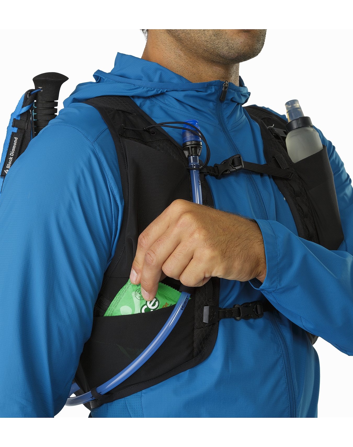 The Norvan 14 appears to have the soft-flask option covered, with two mesh pockets up front that are stated to be compatible with 500ml soft flasks. However, Arc’terxy do not supply compatible flasks, and we found the pockets too short for the 500ml Salomon flasks and too narrow for the Ultimate Direction or Tailwind flasks. On long distance runs I manage my nutrition, hydration and electrolyte balance using 500ml soft flasks, so for me personally, this is a deal-breaker.