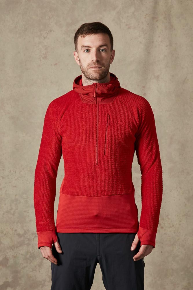 If you’re like me, your initial reaction is along the lines of, a new hooded fleece, big deal. The difference is that the Freak, developed with and inspired by hiding-in-plain-sight mountaineer Paul Ramsden, uses a ‘naked’ version of Polartec’s excellent Alpha fabric. In the past, Alpha’s mostly been a super fast wicking and drying lining fabric, but here Polartec has done away with the other fabrics, leaving just the fluffy, gridded, insulated bit to work to maximum effect. Along with the Alpha in the main body, you also get zoned gridded fleece areas and a windproof, lined, under-helmet hood. There are thumb-loopy things too and the cut is long and slim and theres a humungous venting zip for rapid cooling. Right now, it’s a men-only option, but watch this space, Rab has a history of expanding its innovations into women’s kit a year or so after launch. That windproof hood looks like a little touch of genius if you’ve ever experienced the brutal frustration of an obsolete, non-windproof mid-layer hood worn with a shell. You can thank Paul Ramsden for the inspiration apparently.