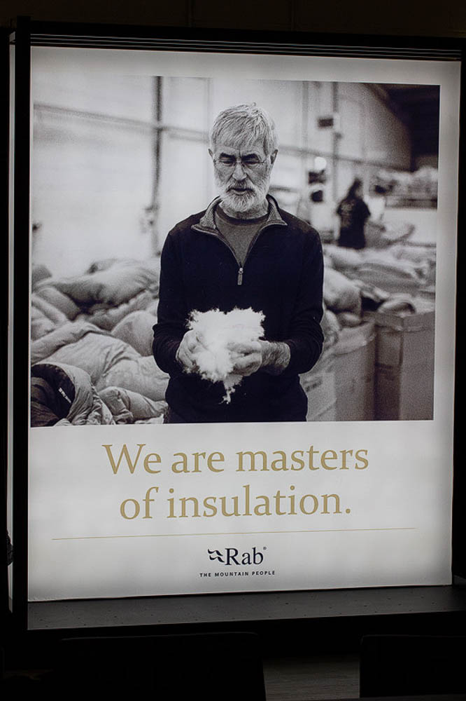 I’m visiting Rab to check out what’s new in their range for winter 2018 – hint, far too much for one article, so I’m just going to focus on half a dozen or so highlights – but slap bang in the middle of the brand’s palatial new showroom on the fringe of the Peak District, is a black and white illuminated print of founder and original ‘Rab’, Rab Carrington.