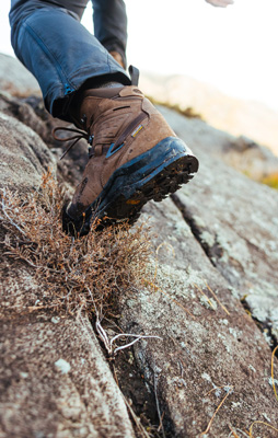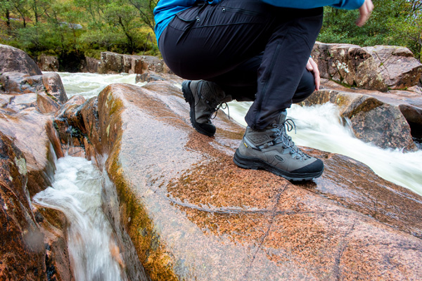 Once on and adjusted, the boots gave a nice mix of comfort and support. The high ankle cuffs are soft and flexible with enough padding that they don’t feel stiff or restrictive, which is sometimes a problem. Underfoot there’s plenty of lengthways flex for comfortable walking, but the full-length stability shank gives decent lateral support and the boots always felt stable on rocky terrain. You can’t feel rocks through the sole either. On top of that there’s enough cushioning from the ‘high rebound’ PU midsole to take the sting out of harder surfaces and even road sections. It should last well too. The footbed is EVA with a round pad under the heel to improve comfort further – a nice detail.