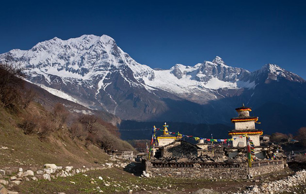The Manaslu Circuit trek is a stunning trek around the world’s eighth highest mountain in a region that sees far less trekkers than other parts of Nepal. The itinerary offered by Adventure Alternative is a 17-day journey (21 days including travel and days in Kathmandu) beginning in the busy market town of Arughat, going up and back along a different path, and ending in Besi Sahar. This is a trek for someone who wants something different in Nepal but still offers the most striking and jaw-dropping scenery. Many people liken the Manaslu Circuit trek to the Annapurna before it got busy! It is in a region which was closed to outsiders until the early ’90s and tourism is still restricted. While it is not quite as high as the Annapurna Circuitm it really is a stunning and less trodden path. The drive from Kathmandu to the start of the trek at Arughat takes around seven hours and the drive from Besi Sahar to Kathmandu takes around six hours. The trek ascent is for 13 days, which includes two full rest days and acclimatisation, to the last settlement of Larkya Phedi. After one day climbing to the high point of Larkya La (for panoramic views of Himlung Himal, Cheo Himal, Kang Guru and Annapurna II), the descent takes four days.