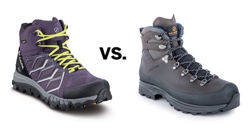 It’s not quite that simple, the boots have slightly different sole units and the ‘Leather’ has a fabric tongue and ankle flex zone, but in rough terms, yeah, the fabric version is lighter. Quite a lot lighter. Scarpa? It’s lightest walking boot is the Nitro GTX made from, yes, you guessed it, a fabric mesh upper.