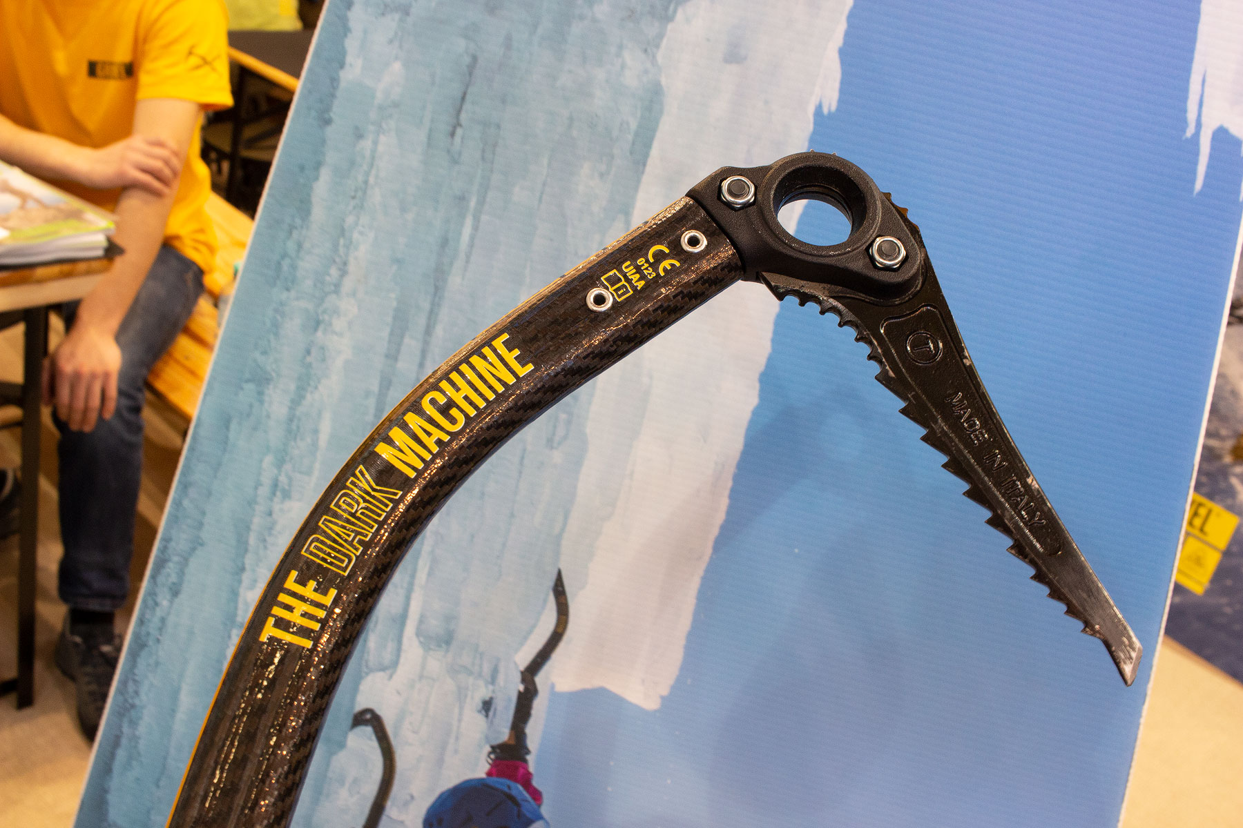 Ice specialist Grivel’s show highlight is a new super lightweight technical axe with carbon fibre shaft called the Dark Machine. It uses a carbon composite shaft – carbon fibre layered over aluminium – and full carbon handle and weighs a claimed 480g. That’s 25g lighter than the North Machine all-rounder and a whopping 165g less than a Tech Machine. There’s also the Dark Machine X which is 10g lighter again and also specced for dry-tooling use.