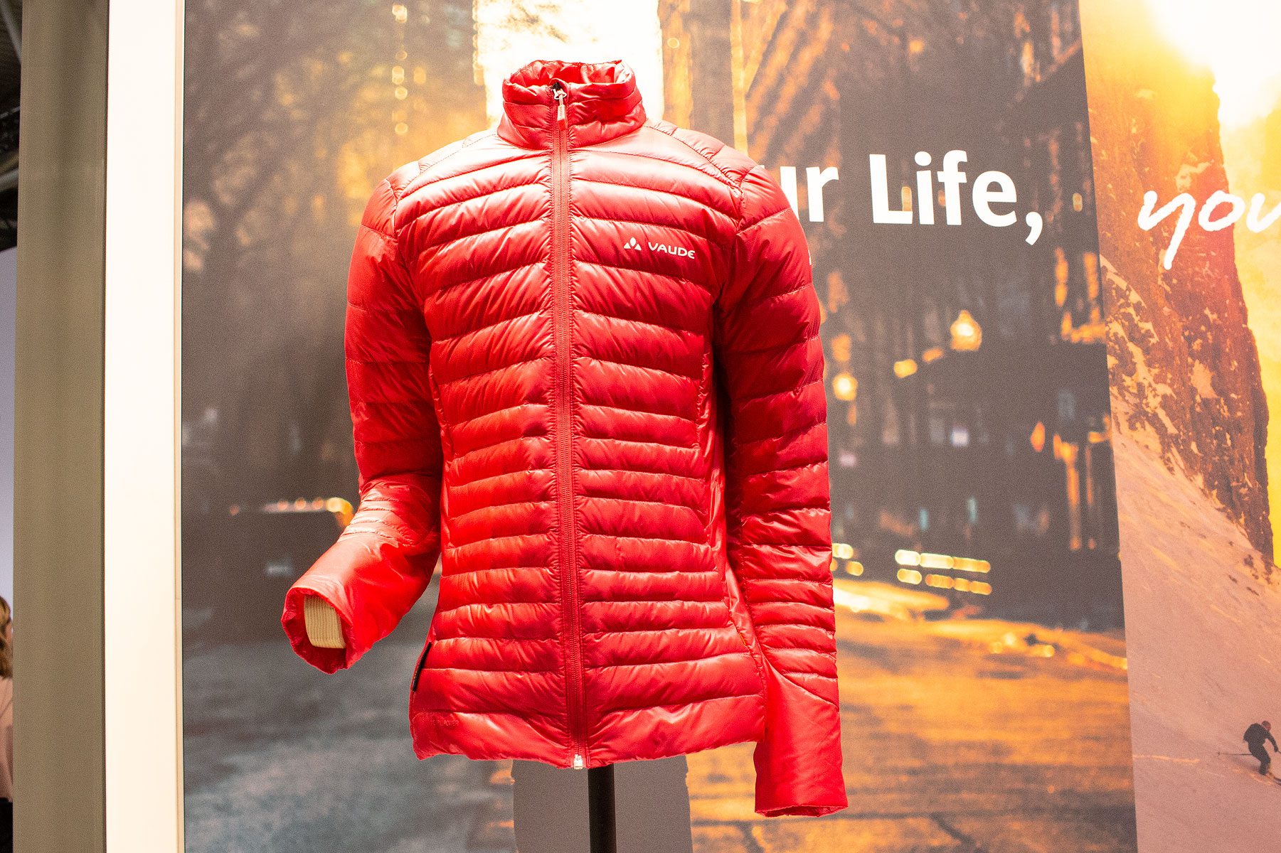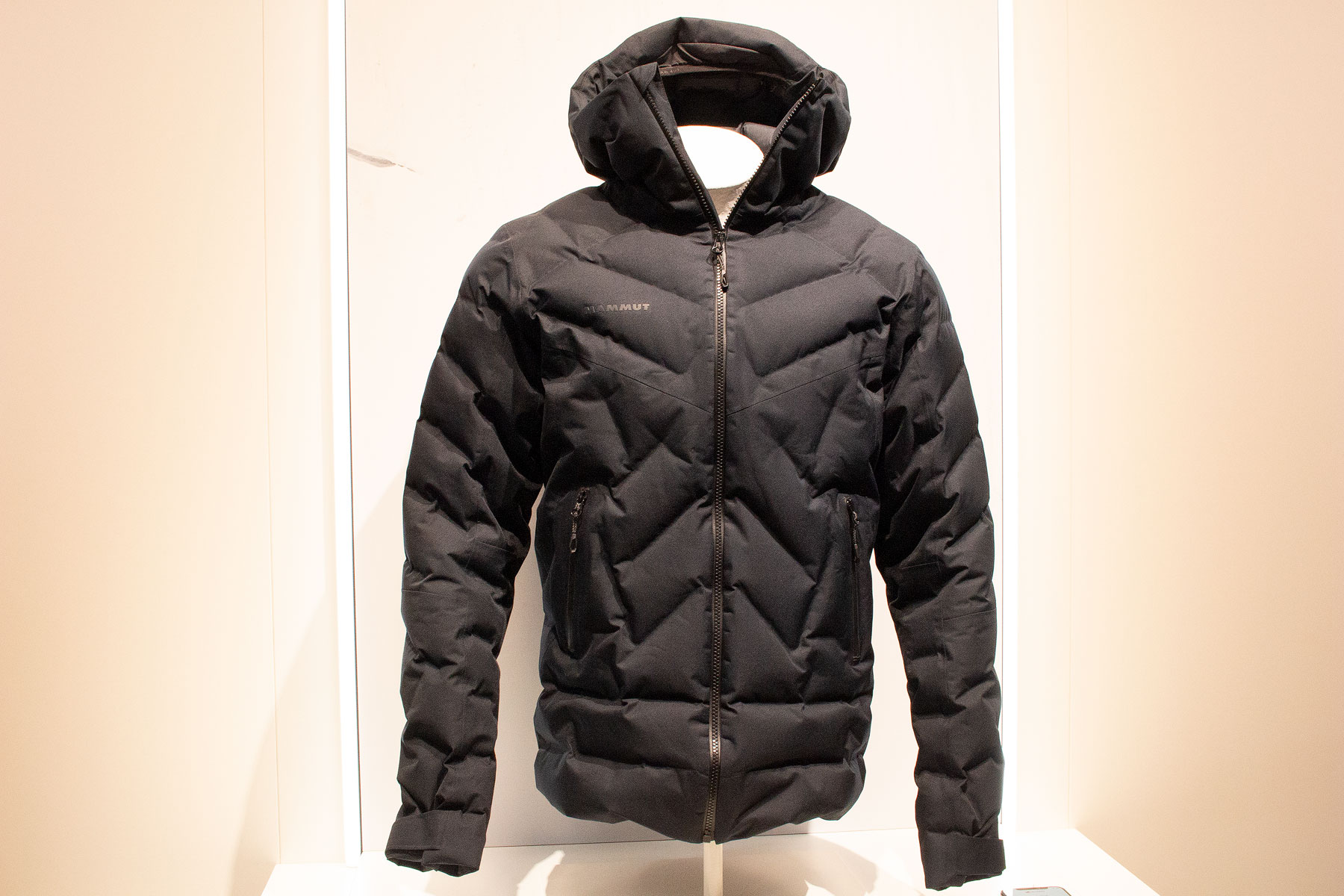 The Swedish company has already done ‘happy geese’, now it’s moved on to happy sheep with new wool insulation using combinations of recovered wool from Italian suit manufacturing and recovered wool produced as a by-product of the Swedish meat industry. Some very cool-looking wool insulated parkas on the stand.