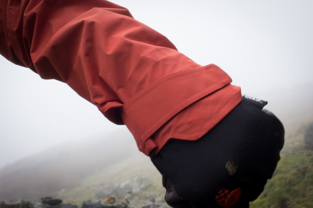 Rab’s used the new Gore-Tex range as an opportunity to refine its cut, it says. The Ladakh is a relatively roomy fit, not loose exactly, but not as fitted as some, and with plenty of room to layer it over a medium warm insulated jacket like its own micro-baffled Cirrus. One neat touch is an internal, adjustable half waist-cord, which lets you cinch the jacket in around the lower back when you don’t need that extra volume. My only misgiving with that is that the fabric rucks up along the cord and could potentially in the long terms suffer abrasion from a pack. The jacket’s a good medium length for protection without restriction and it gets Rab’s characteristically long sleeves for unrestricted climbing use. Those with shorter arms might want to try before buying. As you’d expect hem and cuffs are all fully adjustable with neat one-handed tensioners and hook and loop fittings respectively. The back of the cuff is extended for extra glove protection and there’s enough opening for them to fit over full winter gauntlet-style gloves.