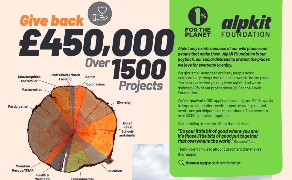 Its charity, Alpkit Foundation, has directly helped over 30,000 get outside. Alpkit has given away 40% of its profits to the charity since 2015. “The physical and mental health benefits of the outdoors is well understood” continues David Hanney and “appreciating our natural spaces makes people more aware of the environmental challenges we face”.