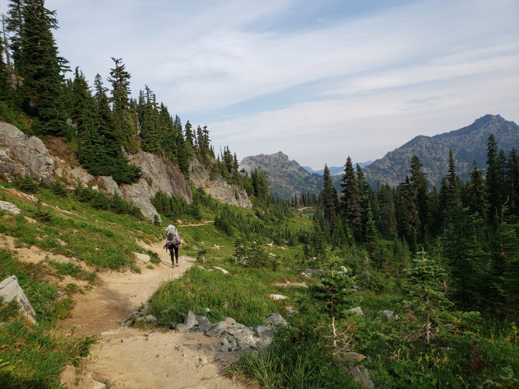 Cayla (aka Cheshire) hiking in central Washington, heading for Snowqualmie