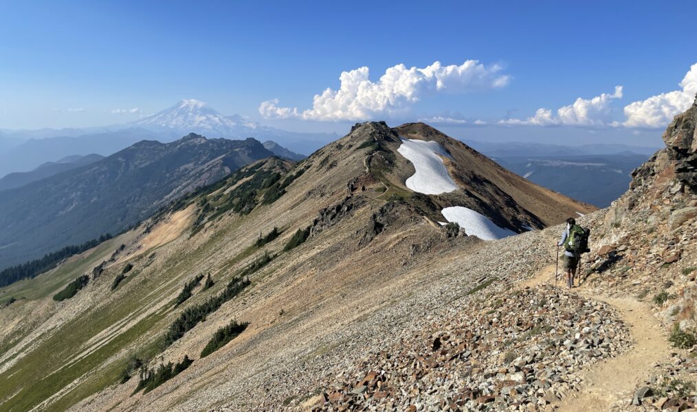 The trails in Washington were beautiful but steep, challenging our bodies to maintain big miles while tackling 1500m gain through numerous blow downs and landslides. The trail rises high along the base of Mount Adams while Mount Rainer and Mount St. Helens tower in the background as you push north. It winds along ridges with beyond breathtaking views. Raspberries and huckleberries dot the landscape, tormenting you as you try to speed by.