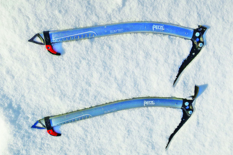 Metal toggles thread through the heads of your tools to secure axes to the pack