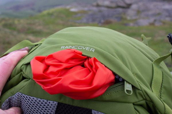 Finally, if it’s rude enough to rain on you, there’s a tethered rain-cover folded into a zipped pocket at the base of the pack. Its a one-minute job to pull it out, anchor at two points and adjust the perimeter draw-cord.