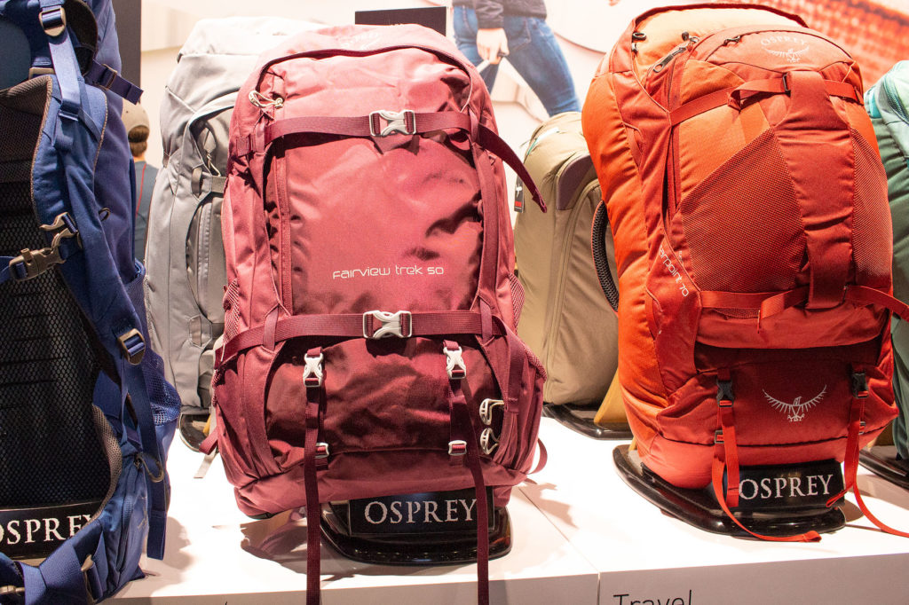 The big news at Osprey was the Farpoint (men’s) and Fairview (women’s) travel come trekking packs, which aim to take a classic travel pack design with features like u-zip suitcase-style zip opening and solid, rectangular profile and add in a top-notch carrying system and trek-friendly features like a sleeping bag compartment, compression straps and a rain cover that also doubles as a full ‘air-cover’ for hold protection. The idea is you get all the pluses of a well-spec’d travel pack, but if you do choose to throw in the odd trek or hut-to-hut adventure, the pack will take it in its stride.