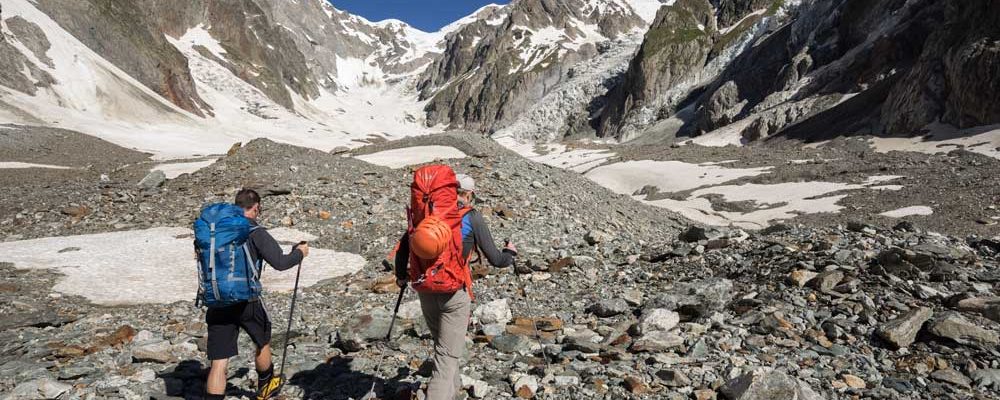 Most of the Italian side of Mont Blanc is composed of wild and impressive ridges of granite and severely steep glacial terrain. However, hidden far out of sight of any road or lift access is a way called the Pope Route, or just ‘the Italian Route’, that climbs from the Glacier du Miage via the Gonella refuge to then follow the Italian/French border to the summit. It is an exceptionally beautiful route that surprisingly finds no greater technical difficulties than the easiest route on the French side. The approach hike up Val Veny and the Miage basin, though only a few hours longer than the Goûter route thankfully serves to filter out all but a trickle of mountaineers so you can enjoy the mountain itself rather than the bunfight on the other side. It was first traversed in 1890, by a team including the future Pope Pius XI, as a descent after climbing the sustained Tournette Spur on the west face of Mont Blanc.