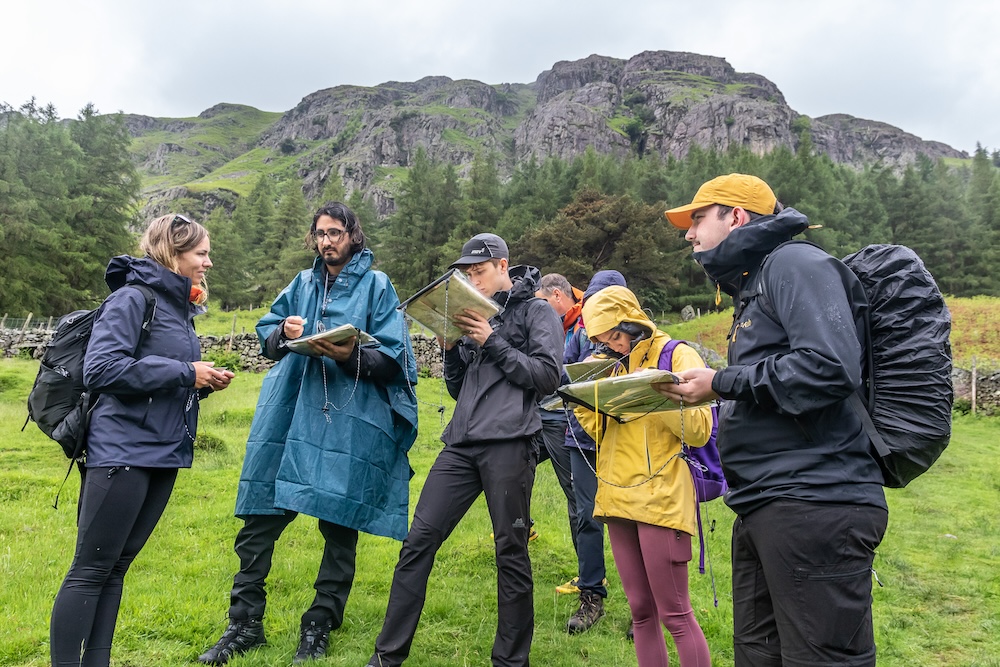 While Chris was scrambling and abseiling, Amanda headed out with a group practising their nav skills with instructor Rose. It seemed fitting that the rain should start just as we were about to start our navigation course, though this wasn’t a problem as Arc’teryx had a gear library with waterproof jackets and trousers available to borrow for the day. Six of us gathered around Rose, who asked us what navigation experience we had. This ranged from nothing at all to having done a few courses, and even having done Mountain Leader training. Arc’teryx had custom OS maps of the area made for the event, which was a really nice touch and we were each gifted one to take home with us. We started with an exercise, going over the various symbols that you’ll find on OS maps, and then Rose explained access and gave a brief description of contours. This wasn’t your typical classroom navigation course though, so it wasn’t long before we started our hike that would take us along the stunning Langdale valley, with the hills surrounding us looking particularly moody this day with low cloud hugging the summits. Just getting out there and doing it made the course not only enjoyable, but suitable for the various levels of knowledge within our group – for some it was more of a refresher and a bit of practice, and for others it helped build the confidence needed to start heading out on the trails with a map. Somebody in the group timed as we ticked off features along the route and practiced ‘thumbing’ the map i.e. using your thumb to continuously keep track of your location on the map. One lady told us that her biggest take-away of the day was to break it down into sections, as she tended to get overwhelmed when looking at the route as a whole. We did a 6km circular route which brought us back to the Arc’teryx Academy basecamp where we had some food and a well-deserved pint.