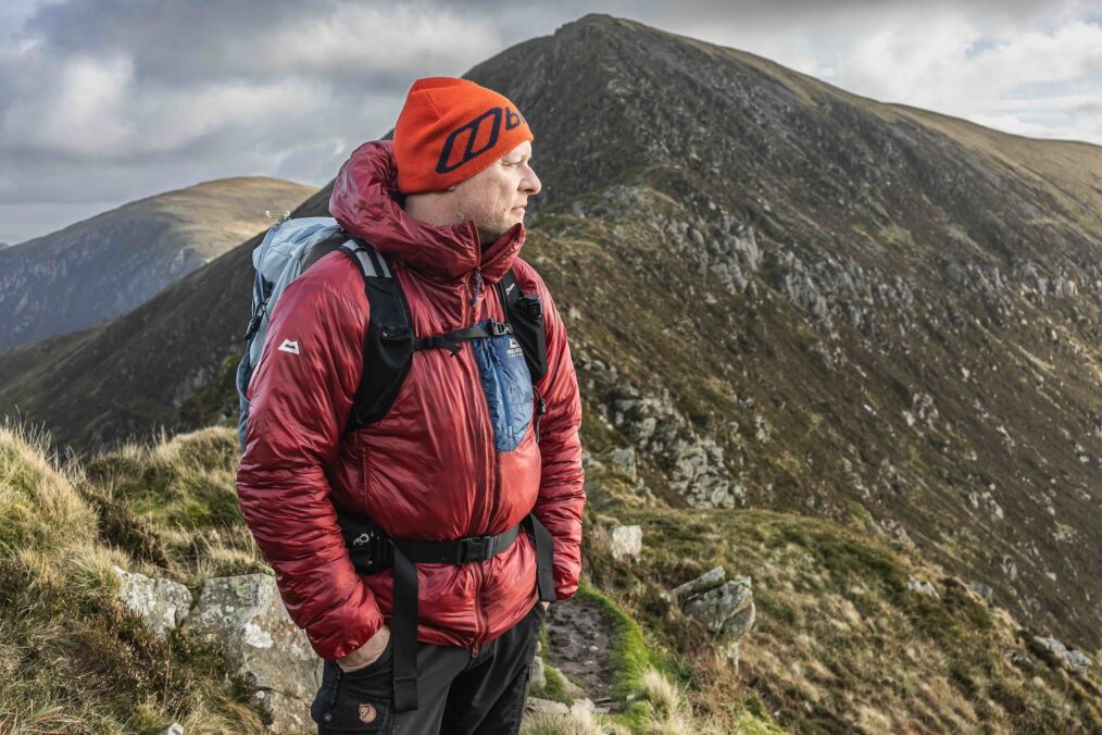 While we haven’t been using the Oreus on cutting-edge expeditions in the Karakoram like Tom, we have been using it in some pretty nasty British weather over the last few months, and it has proved to be an excellent layer to have in our pack. It really does pack down small (see above pic comparing the Oreus to a 1L flask), and at less than 400g is astonishingly warm for its weight. We found it ideal for pulling on when reaching windy ridgelines and summits, and in the wet it continues to keep you warm as you’d expect. We were using a larger size to normal but this really suited us, coming down below the waist and giving protection to the derrière. The arms are long enough to allow you to reach up without exposing wrists, and in fact the insulation overlaps the elasticated cuff so it helps keep your hands warm too. Overall the Oreus just feels very cosy, and seems to be instantly warm when you put it on.