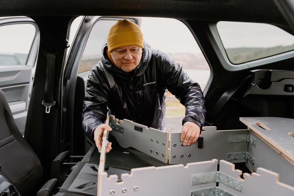 We picked up our Dacia Bigster in Glasgow, equipped with Irn Bru and a handy route card that ensured we took the scenic route rather than the motorway. Our destination? The shores of Loch Doon where there were several Bigsters set up, complete with Dacia’s unique Sleep Pack, blackout blinds for the windows, and a huge panoramic sunroof (or star roof perhaps?). Upon check-in, we were given a warm hat, some cozy socks, and the key to our ‘room’ for the night.