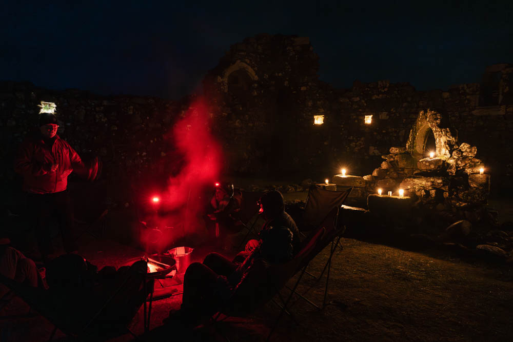 The next order of business was to meet up with one of the Dark Sky Rangers at the nearby Loch Doon Castle to learn about our solar system and constellations, along with some myths and legends. Sadly, the rain started right as we headed off, but our ranger, Matthew, had set up a mock solar system using candles to help us understand the scale of it all. I don’t think any of us will look at the stars the same way again as we left with a much deeper understanding of what we are really looking at when we gaze at the night sky. His passion and enthusiasm definitely made up for the lack of stargazing opportunities!
